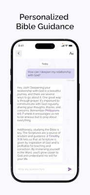 • Ask questions and get answers through the Bible chat, powered by Scripture-based insights.