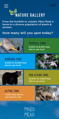 Discover the natural history and beauty of the Pikes Peak Summit. Play a quiz game, explore the nature gallery, and use the app to customize your photos at the summit.