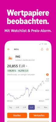 - Wertpapiere kaufen oder verkaufen und deren Entwicklung in interaktiven Charts sehen.