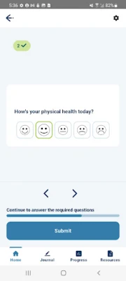Research shows that self-monitoring can lead to better health. Part of a healthy lifestyle includes keeping track of health indicators. Knowing your mental health status from day to day is just as important. The Reflections Behavioral Health Companion is an application to help you monitor and measure your mental health. You can check-in daily to track mental and physical health and medication compliance, journal, and access mental health related resources. You can complete standard mental health screening assessments, share results with a healthcare provider, and review changes over time. Reflections can help you determine if you are experiencing symptoms that may require additional support.