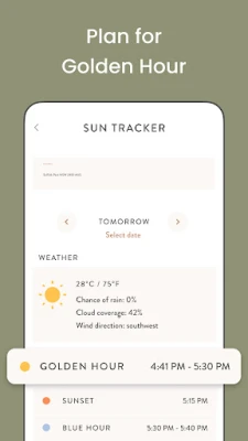 • A magic hour sun tracker to help you plan your photoshoots for the best golden hour light